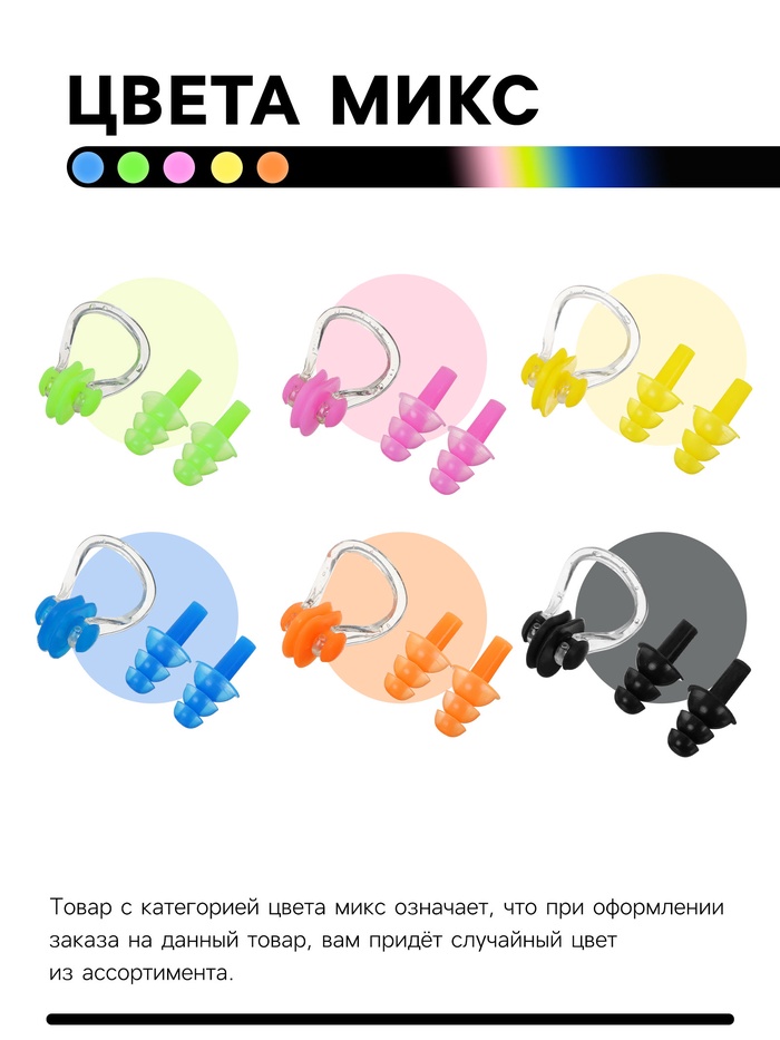 Набор для плавания ONLYTOP: зажим для носа, беруши, цвета МИКС — Характеристики