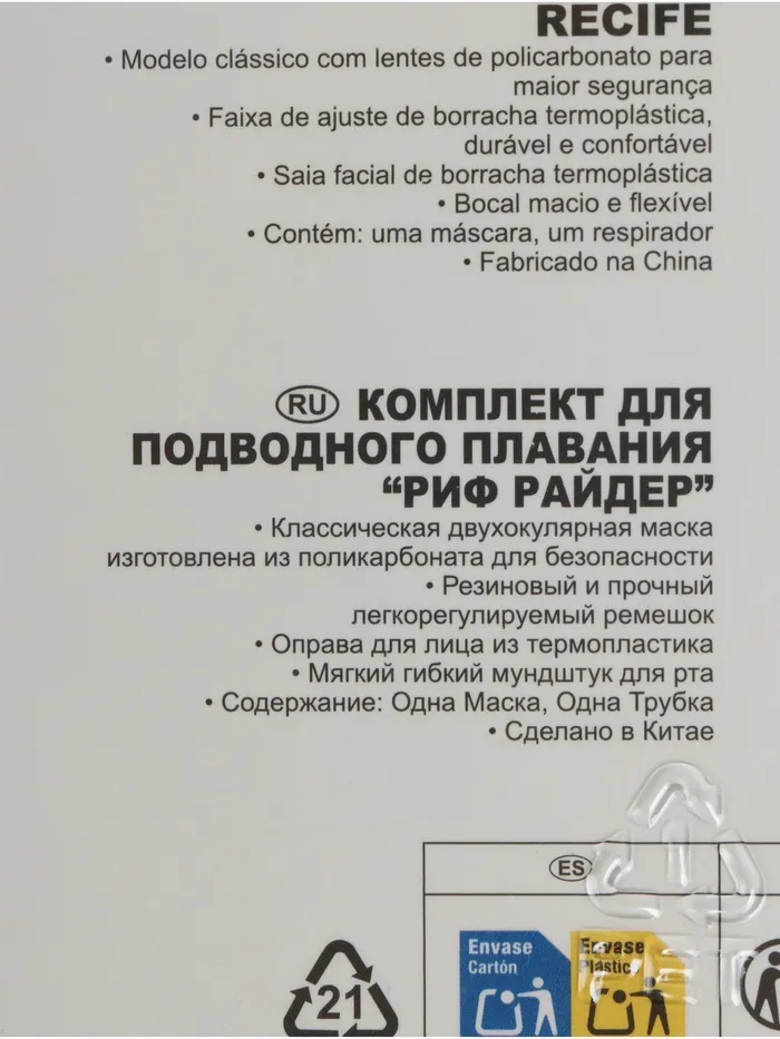 Набор для плавания REEF RIDER: маска, трубка, от 14 лет — Характеристики
