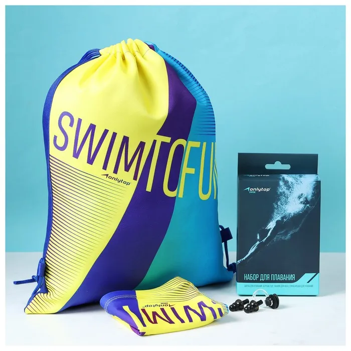 Набор для плавания взрослый ONLITOP Swim: шапочка, беруши, зажим для носа, мешок — Характеристики