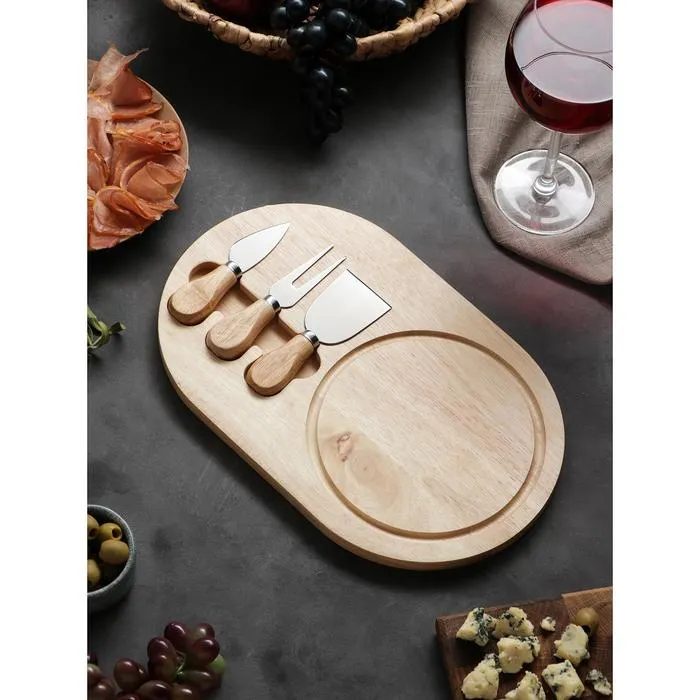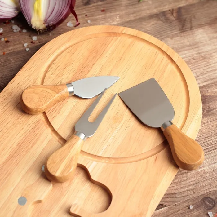 Набор для подачи сыра, доска из дуба Доляна 32.5×20.5×1.5 см, 3 ножа для сыра — Характеристики
