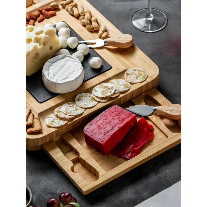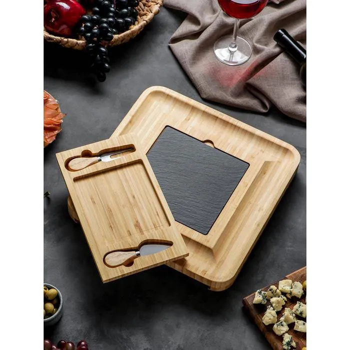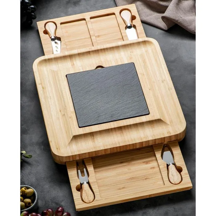 Набор для подачи сыра «Маасдам», 4 ножа, бамбук, доска из сланца — Характеристики