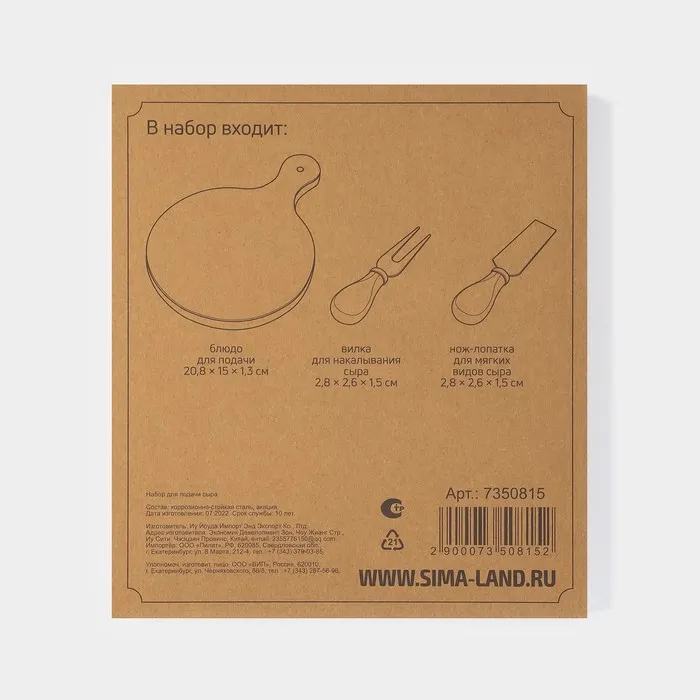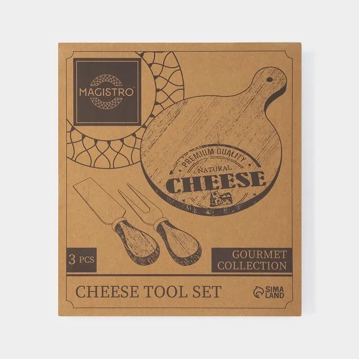 Набор для подачи сыра Magistro Shape, 2 ножа, доска, акация — Характеристики