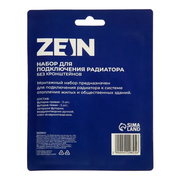 Набор для подключения радиатора ZEIN, 1" x 1/2", без кронштейнов — Характеристики
