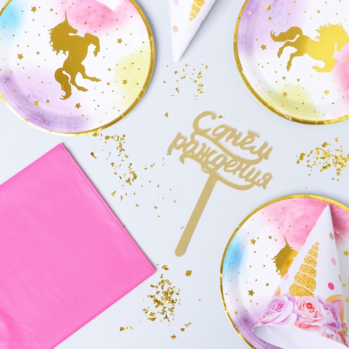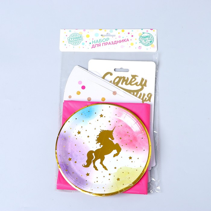 Набор для праздника «Милый единорожка», тарелки 6 шт., колпаки 6 шт., скатерть