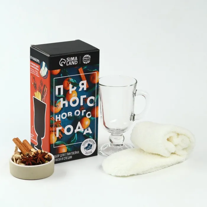 Набор для приготовления глинтвейна «Пряного нового года»: бокал 250 мл., специи 30 г., носки