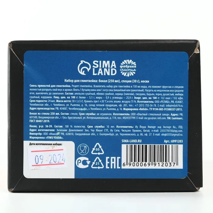 Набор для приготовления глинтвейна «Пряного нового года»: бокал 250 мл., специи 30 г., носки — Характеристики