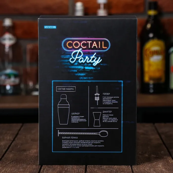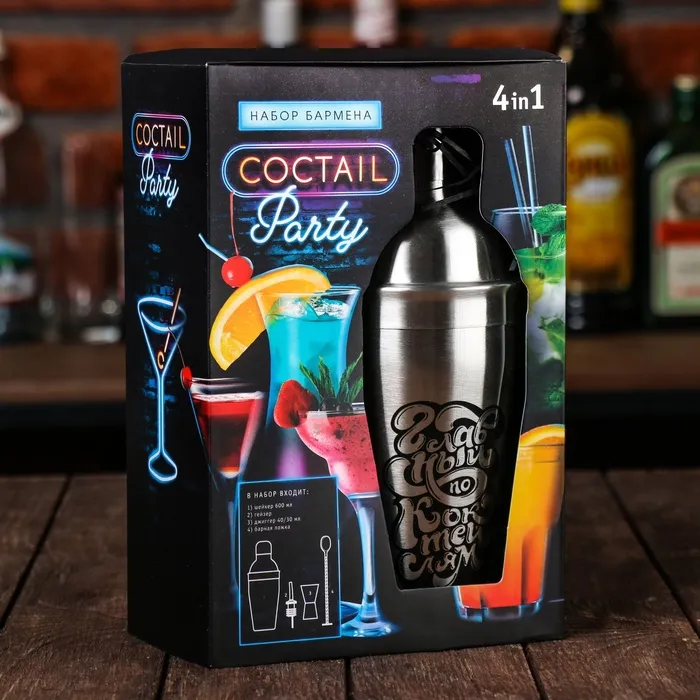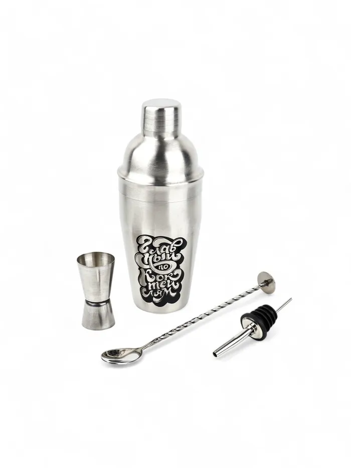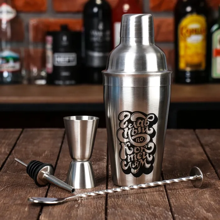 Набор для приготовления коктейлей «Главный по коктейлям», гейзер, джиггер, шейкер 600 мл, ложка — Характеристики