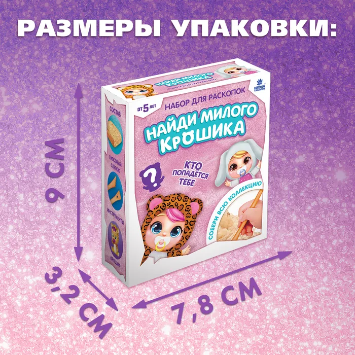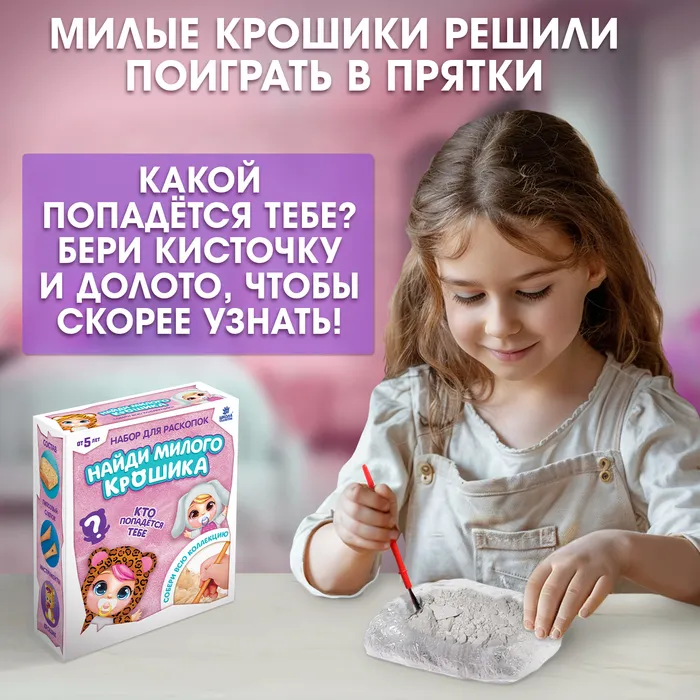 С набором из серии «Крошики» у ребёнка есть возможность устроить раскопки прямо у себя дома! Для этого нужно аккуратно снимать гипс стекой слой за слоем. А внутри слепка ждёт сюрприз.