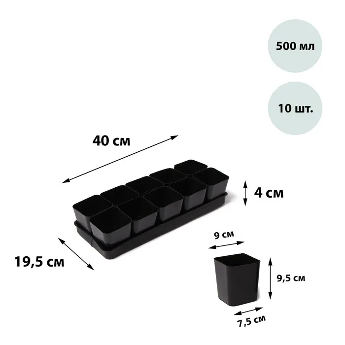 Набор для рассады: стаканы по 500 мл (10 шт.), поддон 40×19.5 см, МИКС, Greengo — Характеристики