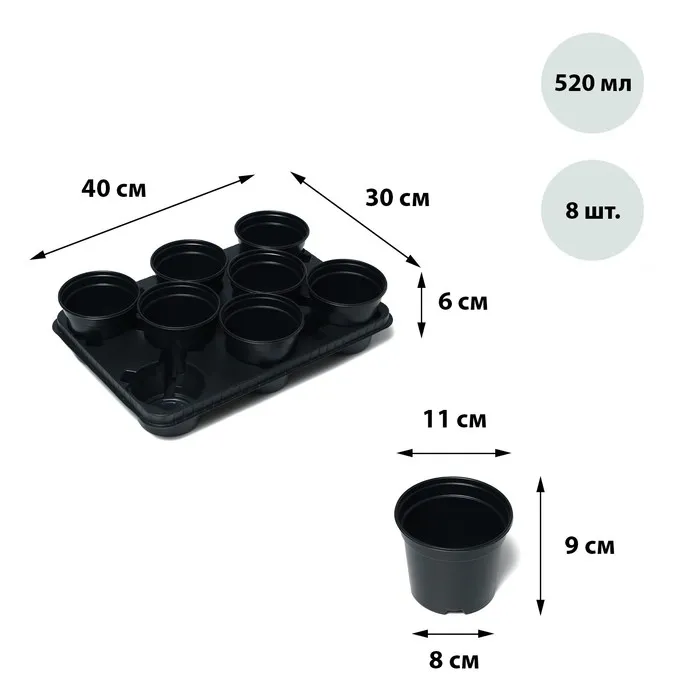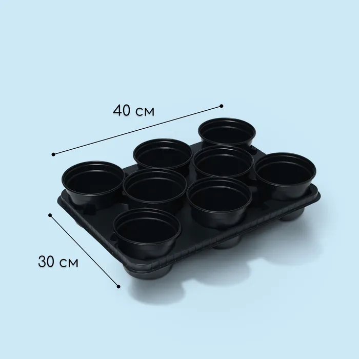 Набор для рассады: стаканы по 500 мл (8 шт.), поддон 40 × 20 см, чёрный, Greengo — Характеристики
