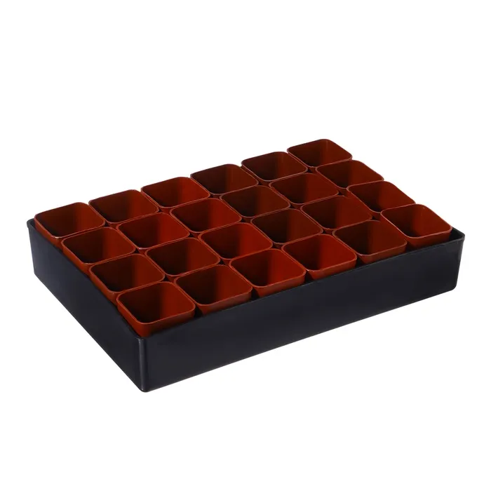 При выращивании в общем ящике корни часто переплетаются и получают недостаточно питания и кислорода. Рассадник на 24 стаканчика создаёт правильные условия.