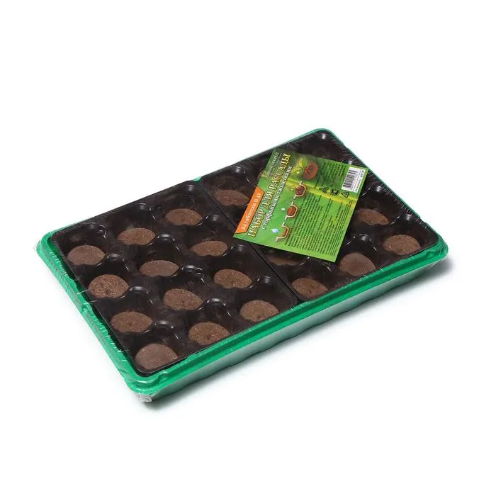 Набор для рассады: торфяная таблетка d=4.1 см, 24 шт., кассета на 24 ячейки по 40 мл, поддон 35.5×22.5 см, зелёный, пластик, Экоторф — Характеристики