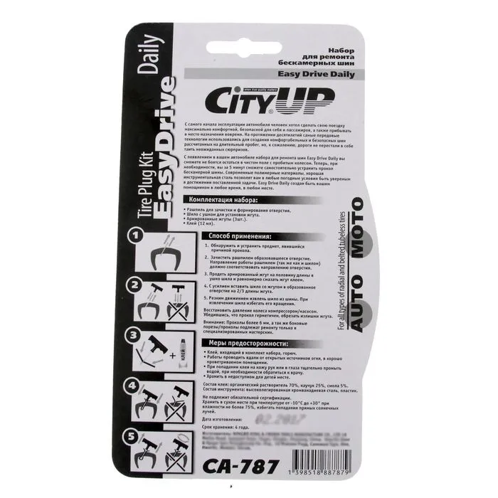 Набор для ремонта бескамерных шин City-UP, CA-787 — Характеристики