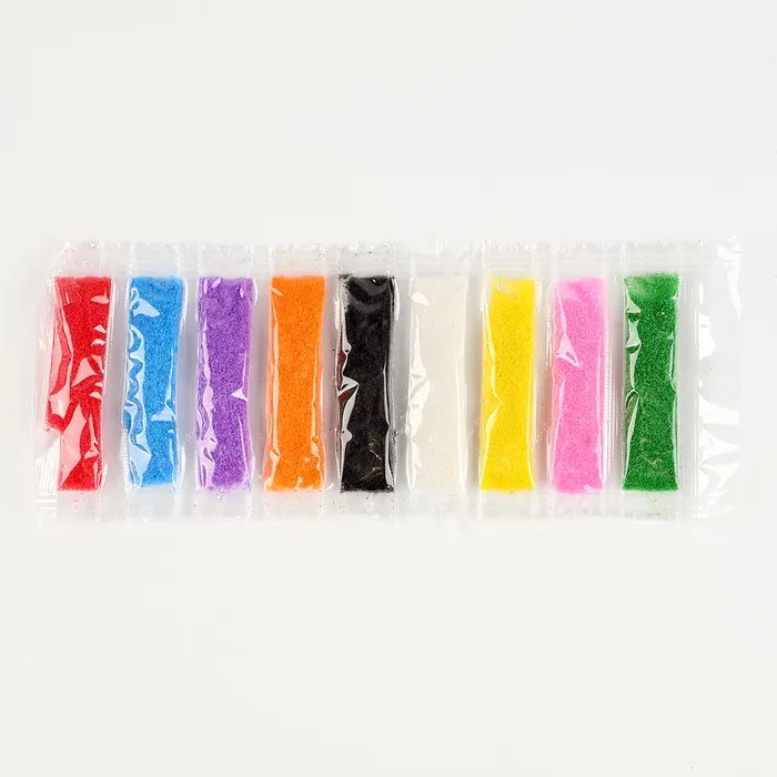 - На клеевую основу насыпьте песок, остатки стряхните.