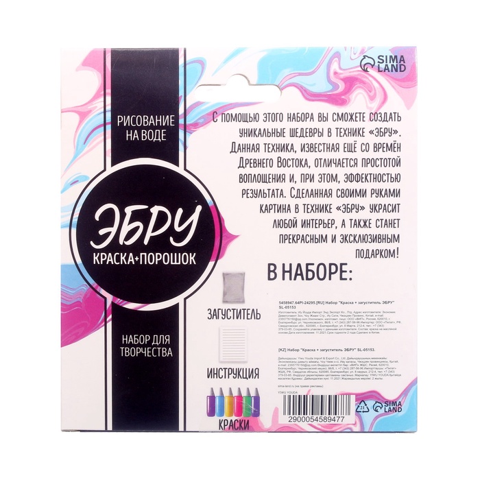 Набор для рисования «Краска и загуститель для Эбру» — Характеристики