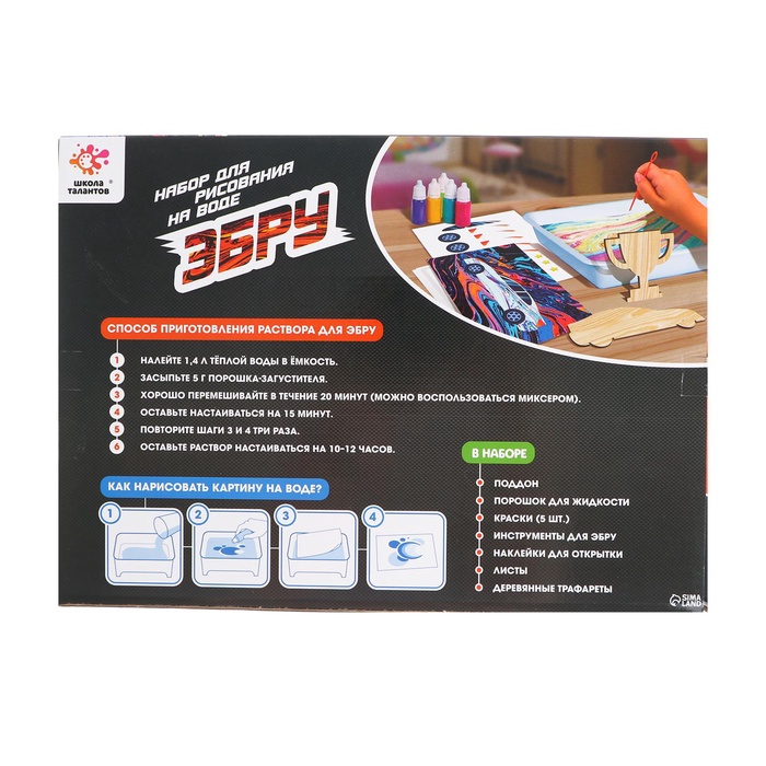 Набор для рисования на воде в технике эбру «Машинки» — Характеристики