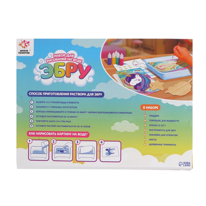 Набор для рисования на воде в технике эбру «Милый единорог» — Характеристики