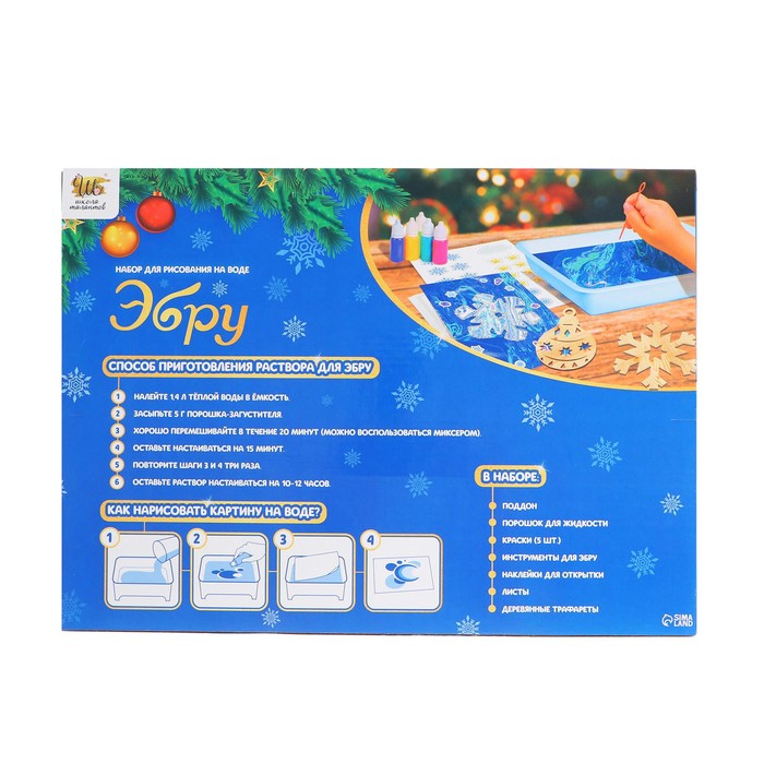 Набор для рисования на воде в технике эбру «Новогодние открытки» — Характеристики