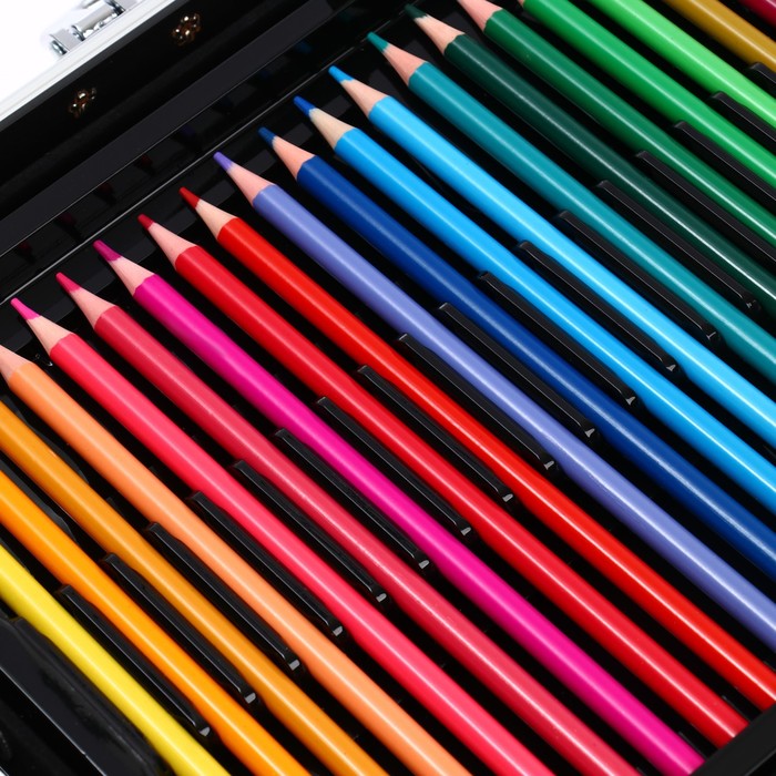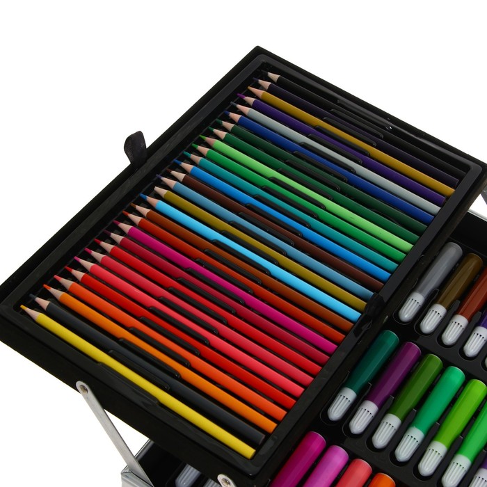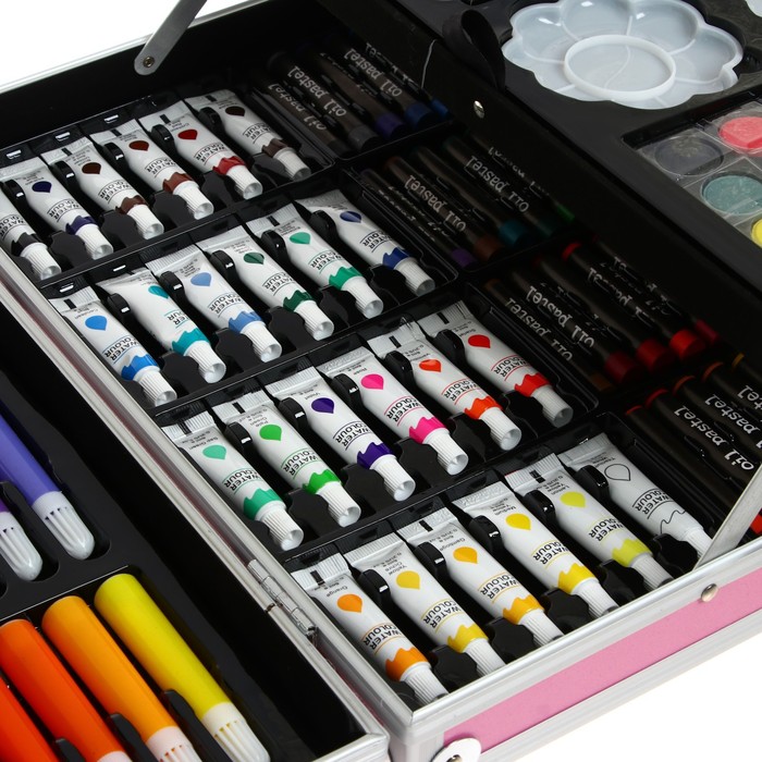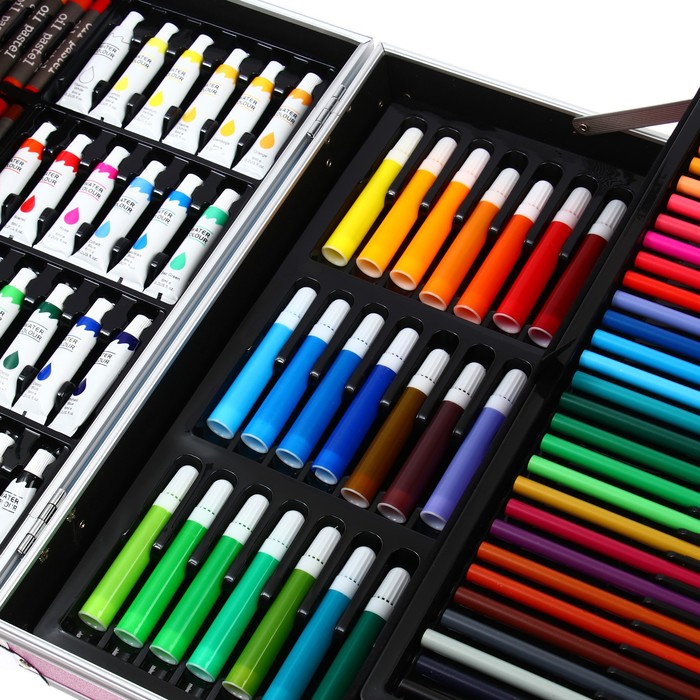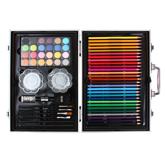 Набор хорошо развивает усидчивость, воображение, образное мышление ребенка.Набор представляет собой кейс с красочным дизайном и грамотно подобранным наполнением.Кейс раскладывается.Каждый предмет надежно закреплен в ячейке.Прочный корпус гарантирует полную защиту внутреннего наполнения от повреждений.Набор надежно упакован.Углы дополнительно защищены от повреждений при транспортировке.Набор удобно брать с собой в школу или в любые поездки.Набор юного художника станет отличным подарком как начинающим художникам так и школьникам.