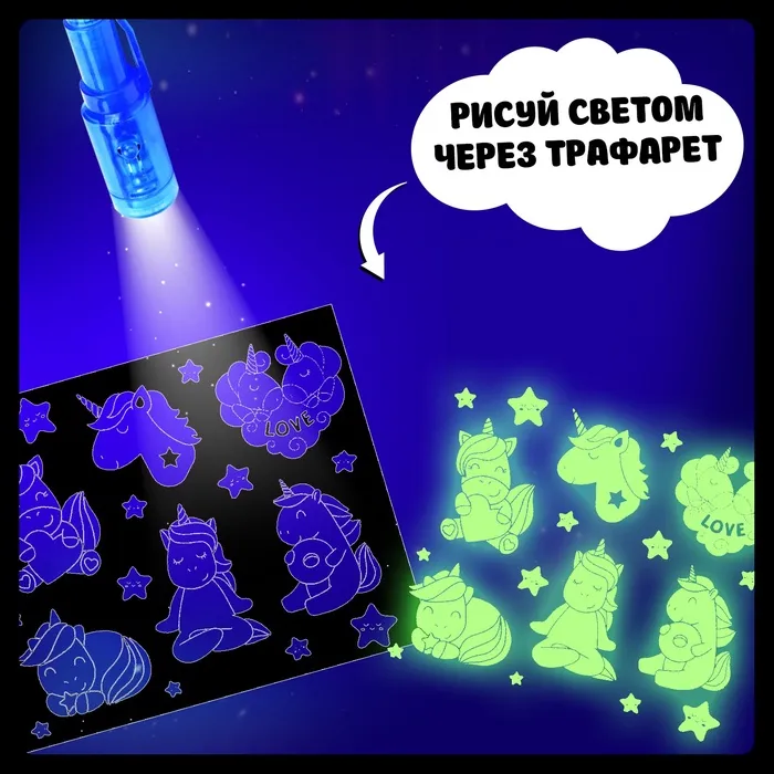 Набор для рисования светом «Единорог», А5, ручка с фонариком и невидимыми чернилами — Характеристики