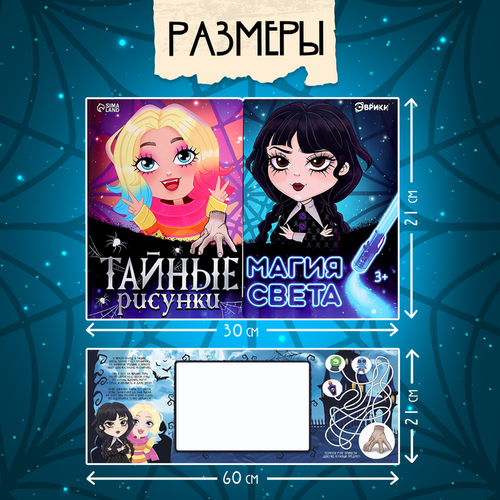 Набор для рисования светом «Магия света: Уэнсдей», А4, ручка с фонариком и невидимыми чернилами — Характеристики