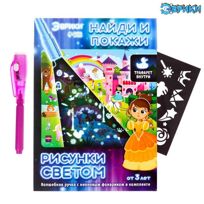 Набор для рисования светом «Найди и покажи: Принцессы», ручка с фонариком и невидимыми чернилами — Характеристики
