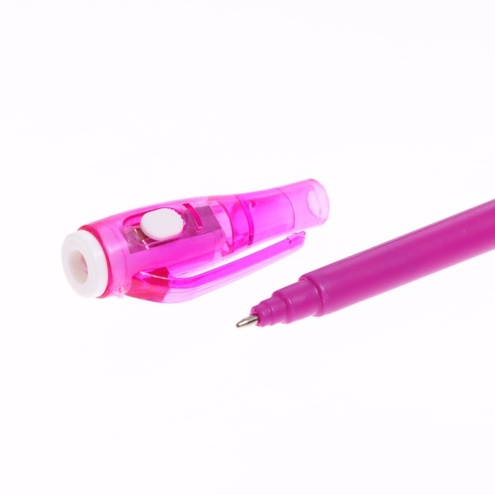 - У ручки-фонарика есть ещё одна функция — невидимые чернила. Снимите колпачок и напишите что-нибудь на листе бумаги, а затем посветите на надпись фонариком. Рисунок проявится.