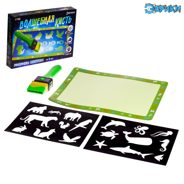 С набором «Принцессы» ребёнок научится рисовать не только простым маркером, но и светом! Малыш будет создавать картинки, используя трафареты, или придумает собственные сюжеты.