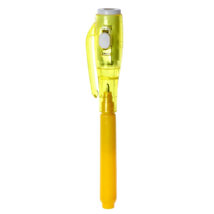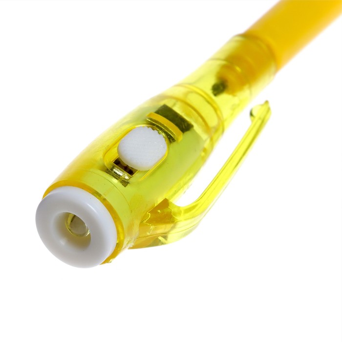 У волшебной ручки есть ещё одна функция — невидимые чернила. Снимите колпачок и напишите что-нибудь на листе бумаги, а затем посветите на надпись фонариком. Рисунок проявится.