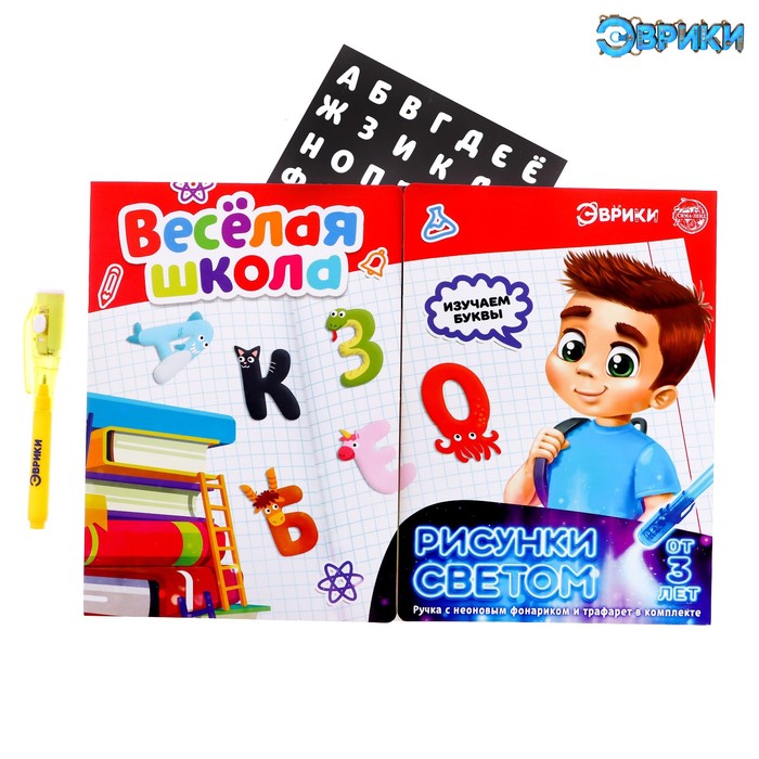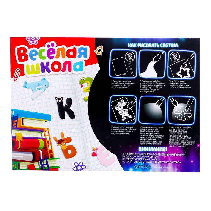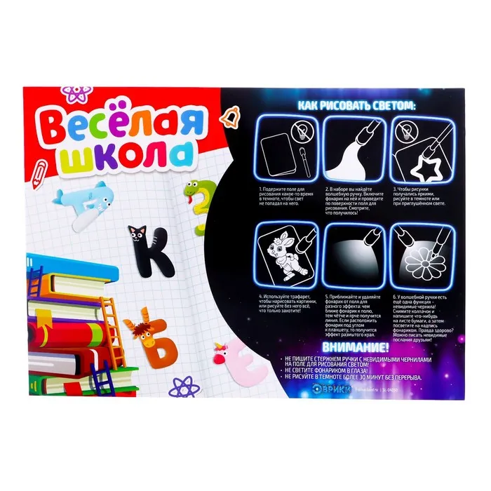 Набор для рисования светом «Весёлая школа: Буквы», ручка с фонариком и невидимыми чернилами — Характеристики