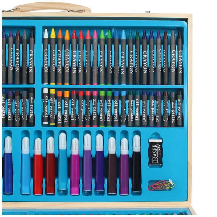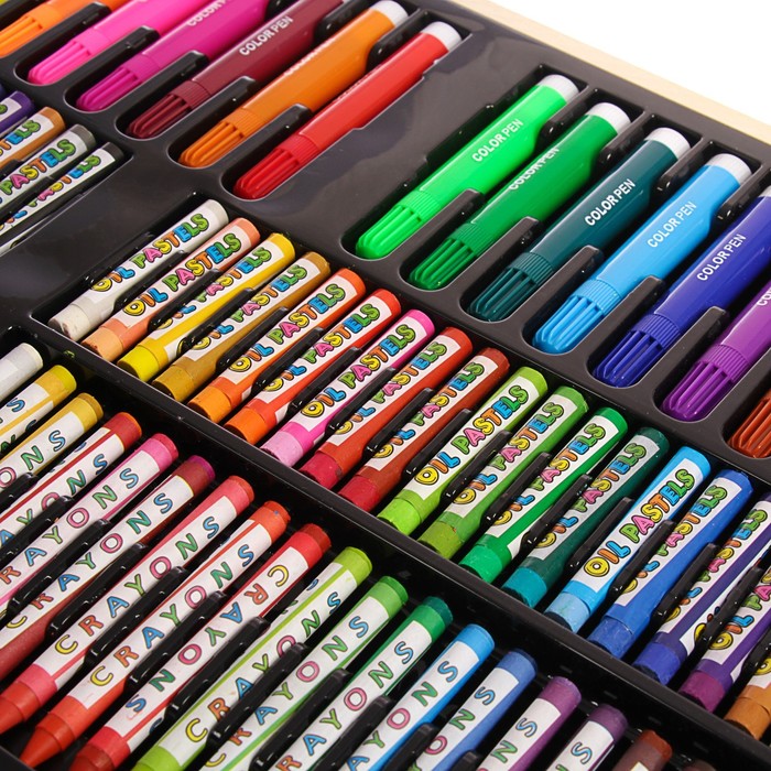 Набор хорошо развивает усидчивость, воображение, образное мышление ребенка.Набор представляет собой кейс с красочным дизайном и грамотно подобранным наполнением.Кейс раскладывается.Каждый предмет надежно закреплен в ячейке.Прочный корпус гарантирует полную защиту внутреннего наполнения от повреждений.Набор надежно упакован.Углы дополнительно защищены от повреждений при транспортировке.Набор удобно брать с собой в школу или в любые поездки.Набор юного художника станет отличным подарком как начинающим художникам так и школьникам.