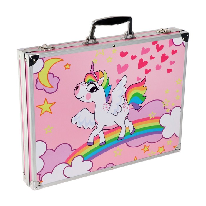 - Набор представляет собой кейс с красочным дизайном и грамотно подобранным наполнением.