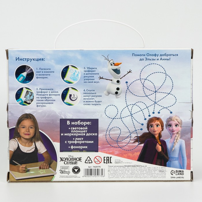 Набор для рисования в темноте, планшет А5, Холодное сердце — Характеристики