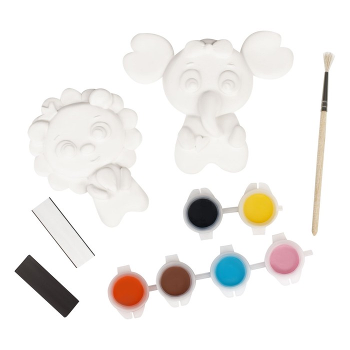 Набор для росписи из гипса «Лев и слонёнок», магниты, 2 фигурки, с красками и кистью — Характеристики