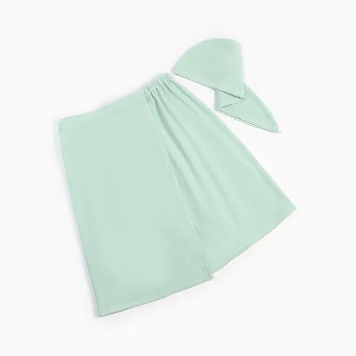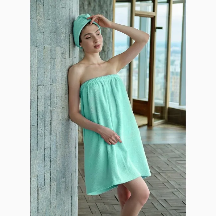 Набор для сауны «Экономь и Я», полотенце - парео 68×150 см, чалма, хлопок 100%, бирюзовый — Характеристики