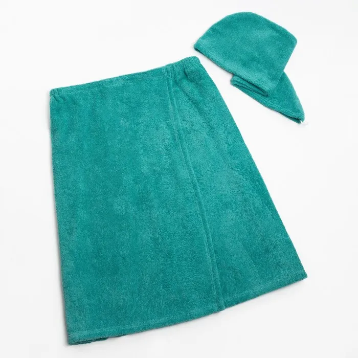 Набор для сауны Экономь и Я:полотенце-парео 68*150см+чалма, цв.голубая трава,100%хл, 320 г/м — Характеристики