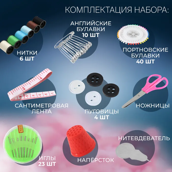 Портновский набор: булавки 40 шт., иглы 16 шт., в блистере, МИКС