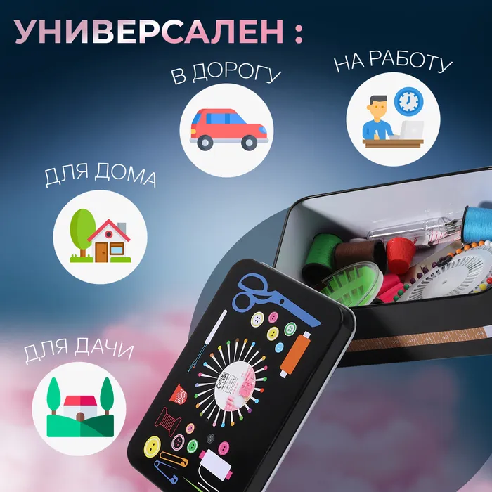 Набор для шитья, 87 предметов, в металлической коробке, 14.5×10 см — Характеристики