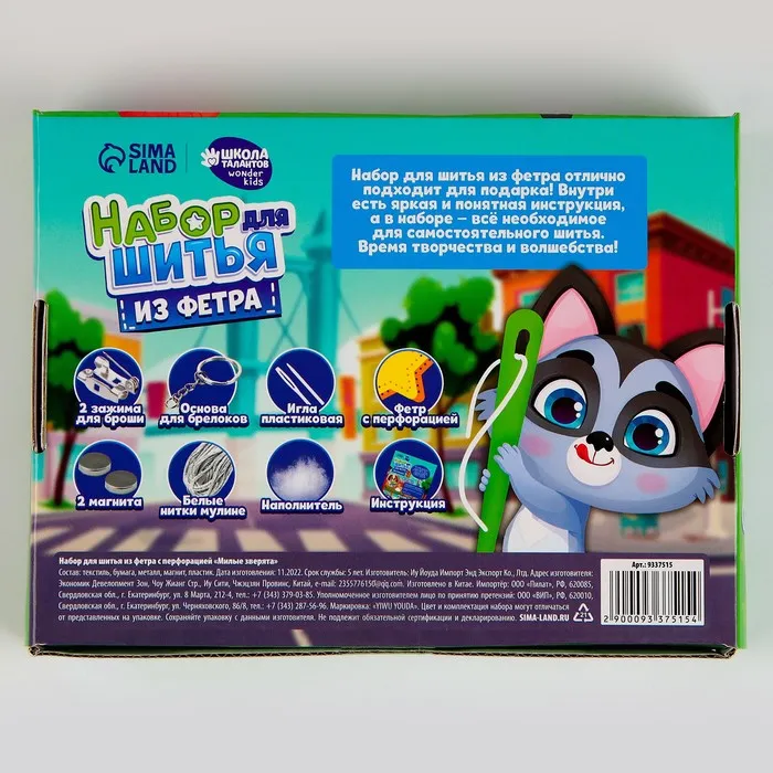 Набор для шитья. Игрушки из фетра своими руками «Милые зверята», с перфорацией — Характеристики
