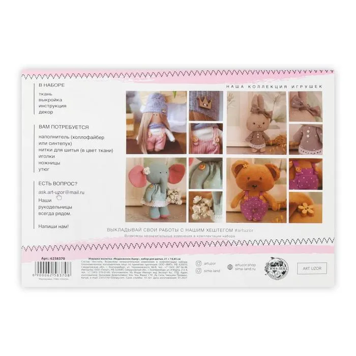 Набор для шитья игрушки-малютки «Медвежонок Ашер», 17 см — Характеристики
