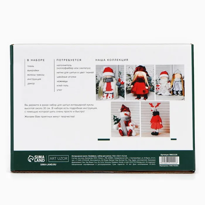 размер готовой игрушки около 30 смготовое изделие станет стильным украшением для вашего доманабор упакован в красивую коробку, он может стать отличным подарком для ребенка и взрослоговы сможете собрать целую коллекцию кукол и игрушек АРТ УзорЧем полезно?