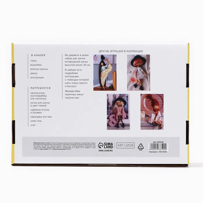 размер готовой игрушки около 30 смготовое изделие станет стильным украшением для вашего доманабор упакован в красивую коробку, он может стать отличным подарком для ребенка и взрослоговы сможете собрать целую коллекцию кукол и игрушек АРТ Узор Чем полезно?