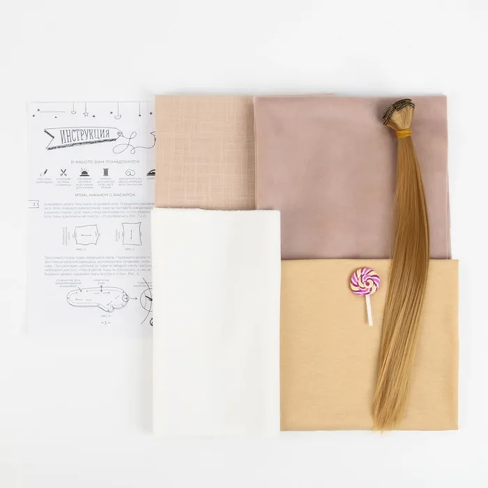 Примечание: В наборе для шитья кукол присутствуют волосы