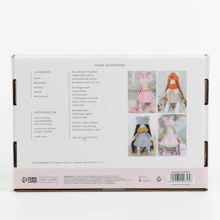 размер готовой игрушки около 30 смготовое изделие станет стильным украшением для вашего доманабор упакован в красивую коробку, он может стать отличным подарком для ребенка и взрослоговы сможете собрать целую коллекцию кукол и игрушек АРТ Узор Чем полезно?