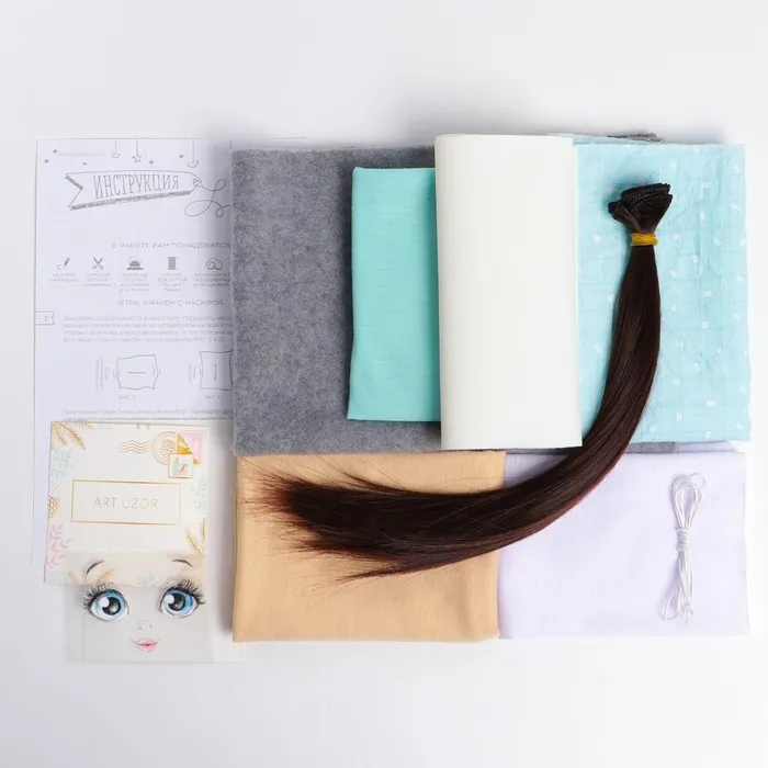 Примечание: В наборе для шитья кукол присутствуют волосы