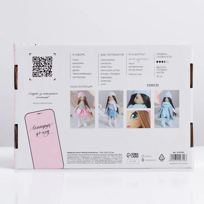 размер готовой игрушки около 30 смготовое изделие станет стильным украшением для вашего доманабор упакован в красивую коробку, он может стать отличным подарком для ребенка и взрослоговы сможете собрать целую коллекцию кукол и игрушек АРТ Узор Чем полезно?