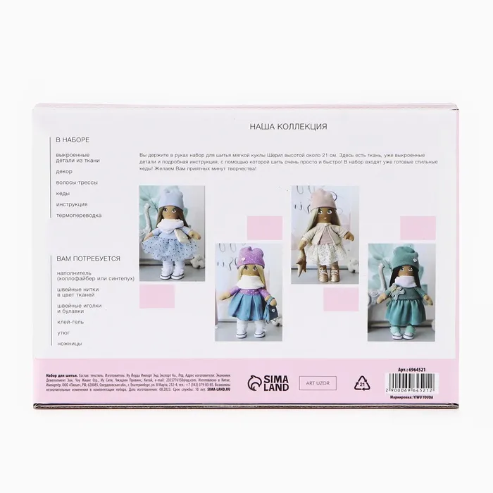 размер готовой игрушки около 21 смготовое изделие станет стильным украшением для вашего доманабор упакован в красивую коробку, он может стать отличным подарком для ребенка и взрослоговы сможете собрать целую коллекцию кукол и игрушек АРТ УзорЧем полезно?