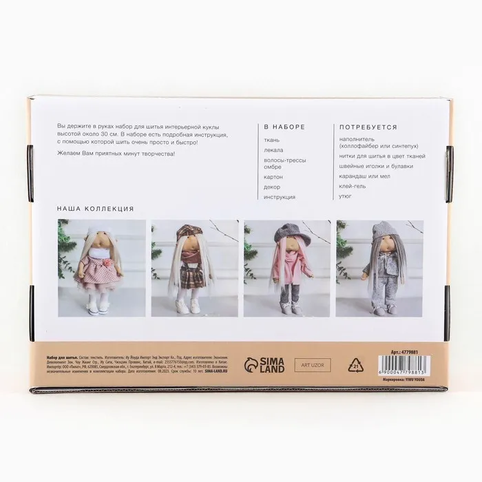 размер готовой игрушки около 30 смготовое изделие станет стильным украшением для вашего доманабор упакован в красивую коробку, он может стать отличным подарком для ребенка и взрослоговы сможете собрать целую коллекцию кукол и игрушек АРТ Узор Чем полезно?