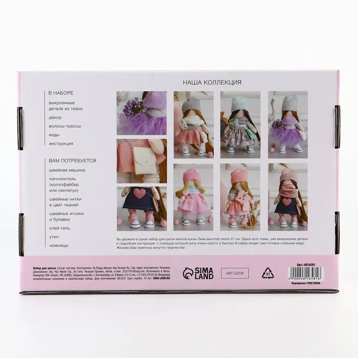 размер готовой игрушки около 22 смготовое изделие станет стильным украшением для вашего доманабор упакован в красивую коробку, он может стать отличным подарком для ребенка и взрослоговы сможете собрать целую коллекцию кукол и игрушек АРТ УзорЧем полезно?