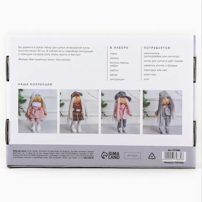 размер готовой игрушки около 30 смготовое изделие станет стильным украшением для вашего доманабор упакован в красивую коробку, он может стать отличным подарком для ребенка и взрослоговы сможете собрать целую коллекцию кукол и игрушек АРТ Узор Чем полезно?